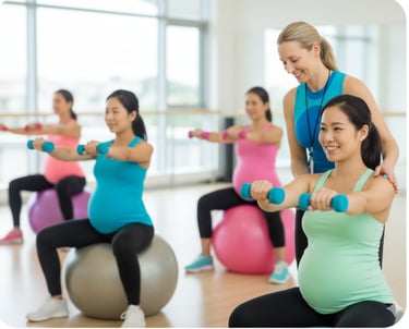 What to expect: Core support exercises, pelvic stability training, light strengthening, and guided stretches using a stability ball.