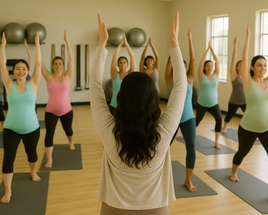 What to expect: Core engagement, pelvic stability work, balance training, and guided stretching using a stability ball.